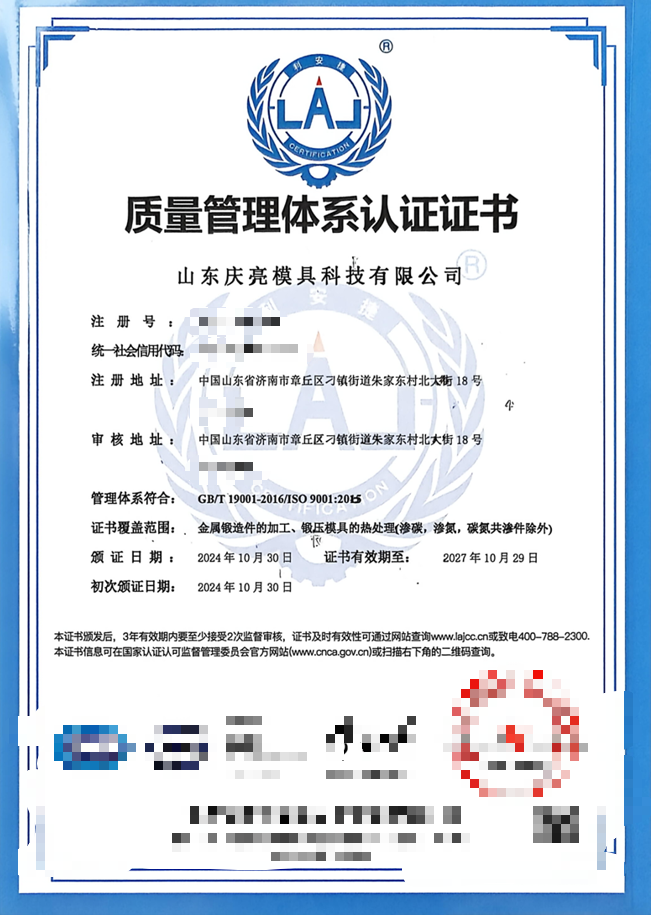 Shandong Qingliang Mould Technology Co., Ltd. (называемая также Фабрикой по производству штампов Qingliang) - это предприятие по производству кованных деталей и членское предприятие Китайской ассоциации индустрии штампов. Компания расположена в районе Дяожэнь, районе Чжанцю, городе Цзинань, провинция Шаньдун. Регистрированный уставной капитал компании составляет 10 миллионов юаней, а в 2023 году она достигла годового объема производства более 40 миллионов юаней. С момента входа в ковочную промышленность в 2011 году компания постепенно развилась в комплексное предприятие, которое объединяет ковку, механическую обработку и термическую обработку.